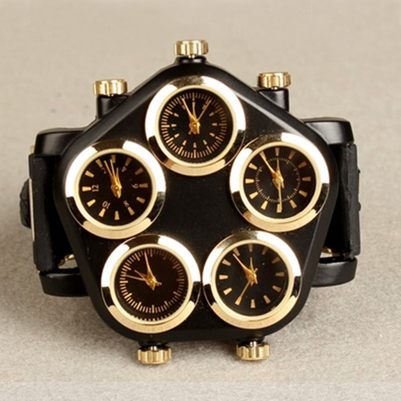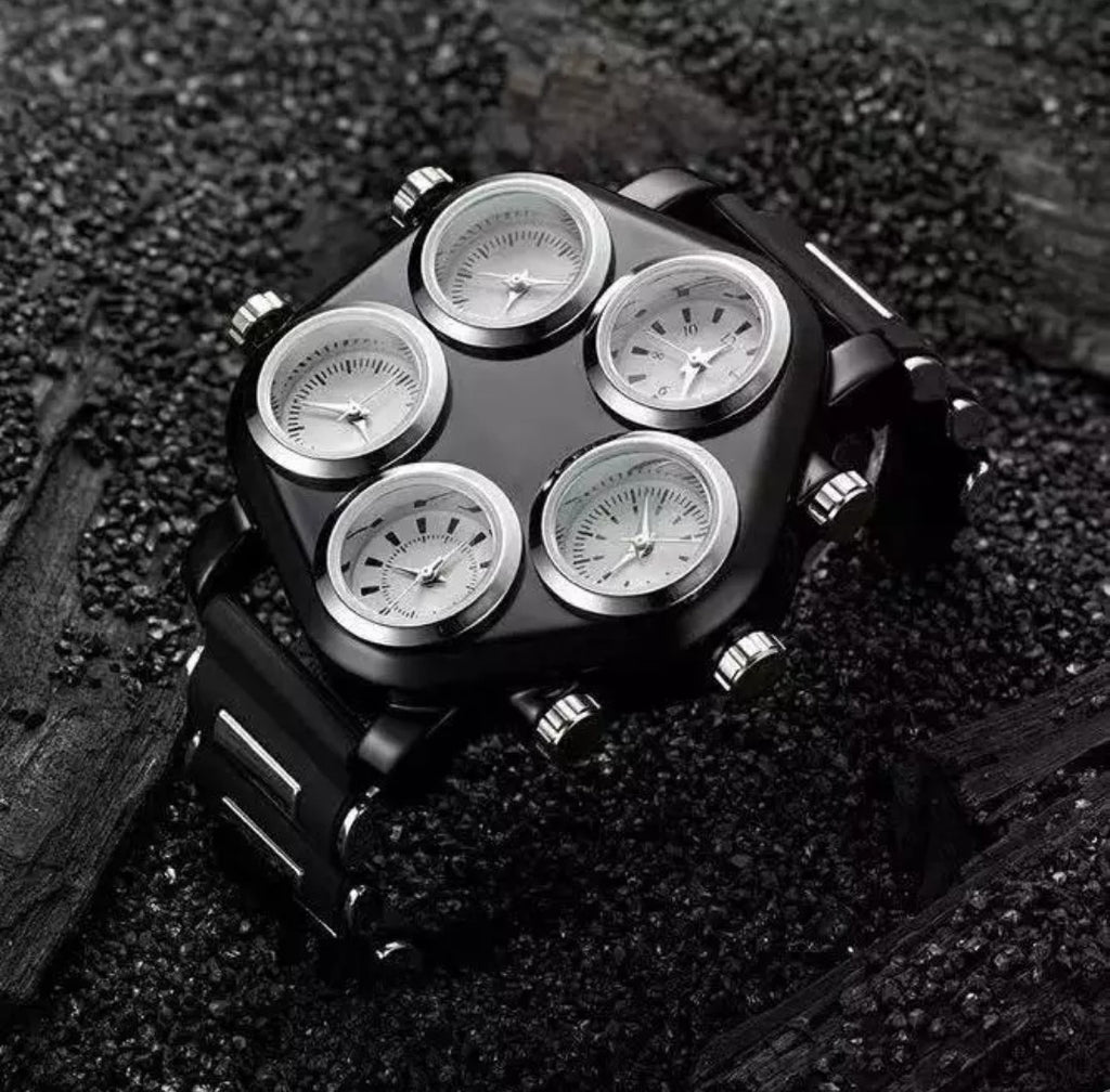 Reloj de pulsera deportivo para hombre, reloj de silicona de cuarzo estilo Punk callejero Hip hop Esfera Grande con 5 zonas horarias, reloj de hombre creativo